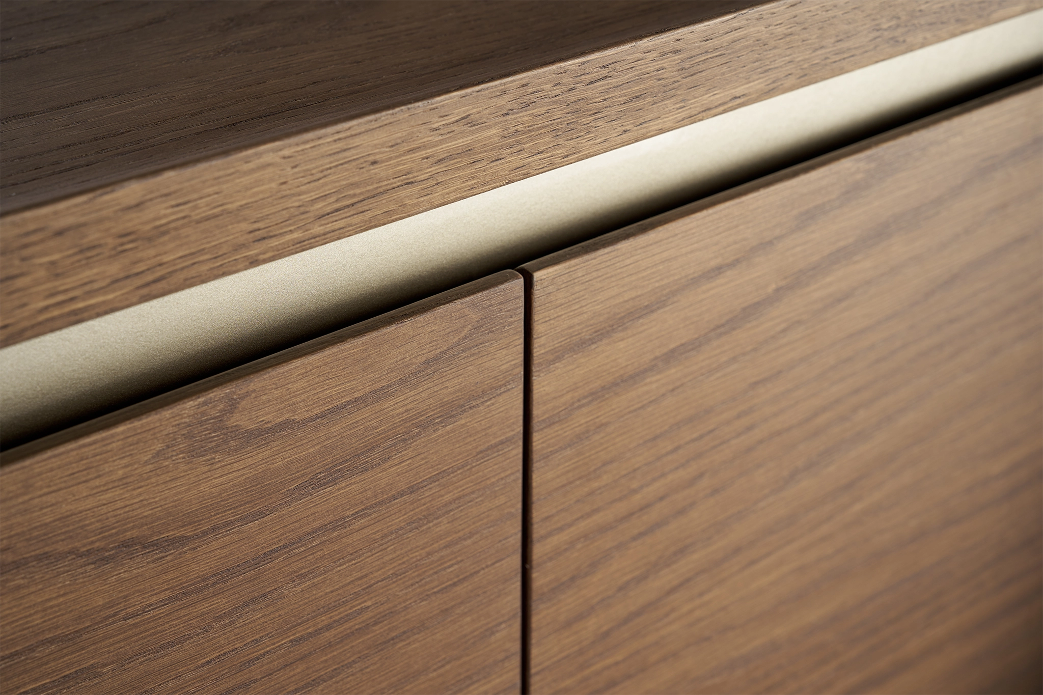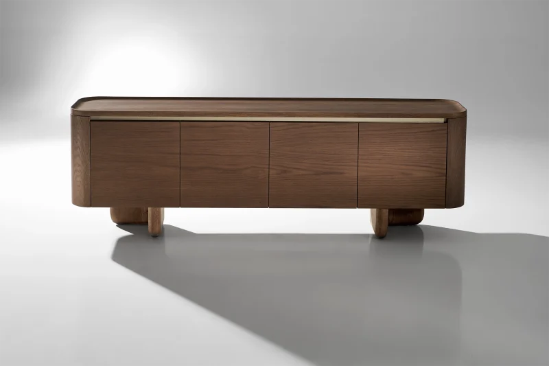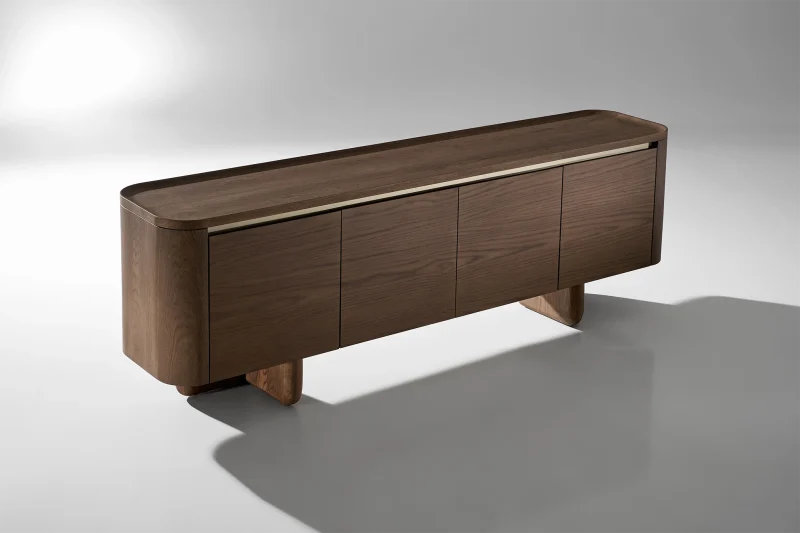 Ο μπουφές αυτός ειναι κατασκευασμένος από δρύ, με πόδια από μασίφ ξύλο ενω οι καμπύλες στις γωνίες ολοκληρώνουν τη σύνθεση, προσφέροντας μια ήπια, χειροποίητη αισθητική . Η μεταλιζέ λεπτομέρεια έρχεται να προσθέσει τη δική της υπογραφή∙ ένα διακριτικό φως που αντανακλά την προσοχή στη λεπτομέρεια και φέρνει μια πινελιά μοντέρνας κομψότητας.