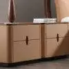Αυτό το κομοδίνο χαρακτηρίζεται από τον ιδιαίτερο και μοντέρνο σχεδιασμό του, που συνδυάζει την πρωτοτυπία με τη λειτουργικότητα. Η επένδυσή του είναι από ένα ζωντανό, πορτοκαλί χρώμα- δέρμα το οποίο του προσδίδει έναν τολμηρό και σύγχρονο χαρακτήρα.