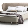 Ο σκελετός του κρεβατιού είναι επενδυμένος σε μια απαλή μπεζ/γκρι απόχρωση, δημιουργώντας μια αρμονική συνέχεια με το κεφαλάρι. Η χαμηλή του σιλουέτα και τα διακριτικά πόδια ενισχύουν τον μοντέρνο χαρακτήρα του.