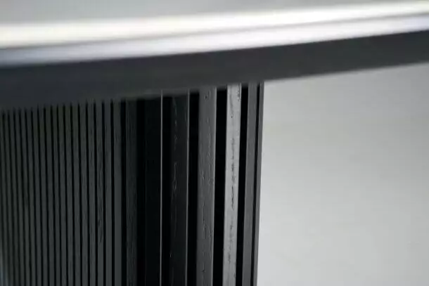 Η βάση του τραπεζιού είναι ιδιαίτερα ενδιαφέρουσα, με μεταλλικές λεπτομέρειες σε χρώμα bronze. Αυτές οι λεπτομέρειες προσδίδουν μια βιομηχανική, αλλά ταυτόχρονα πολυτελή αίσθηση, ενώ η στιβαρή κατασκευή εξασφαλίζει απόλυτη σταθερότητα. Ο συνδυασμός του ζεστού ξύλου δρυός, του πρακτικού κεραμικού και των κομψών bronze λεπτομερειών δημιουργεί ένα έπιπλο με έντονη προσωπικότητα και υψηλή αισθητική, ιδανικό για σύγχρονες τραπεζαρίες που αναζητούν την αρμονία του design και της λειτουργικότητας.