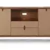 Αυτός ο μπουφές χαρακτηρίζεται από τον μοντέρνο και κομψό σχεδιασμό του, ο οποίος συνδυάζει την αισθητική με την πρακτικότητα. Είναι κατασκευασμένος με σώμα επενδυμένο με δέρμα και λεπτομέρειες από μασίφ καρυδιά, προσδίδοντας μια αίσθηση πολυτέλειας και διαχρονικής αξίας.