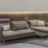 Αυτός ο καναπές, χαρακτηρίζεται από τον σύγχρονο, μινιμαλιστικό σχεδιασμό του και την έμφαση στις καθαρές, λιτές γραμμές. Η επένδυσή του είναι από ένα ουδέτερο, ανοιχτό γκρι ύφασμα, το οποίο προσδίδει μια αίσθηση ηρεμίας και φινέτσας.