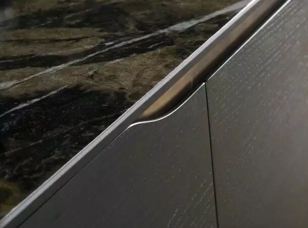 Το πιο χαρακτηριστικό του στοιχείο είναι οι στρογγυλεμένες άκρες του, τόσο στην πρόσοψη όσο και στις πλευρές, οι οποίες του δίνουν μια ιδιαίτερη, φιλική αίσθηση και μειώνουν την οπτική του όγκο. Οι λιτές γραμμές των συρταριών ή των ντουλαπιών, χωρίς εμφανείς λαβές, ενισχύουν τον μινιμαλιστικό χαρακτήρα και την καθαρή αισθητική.