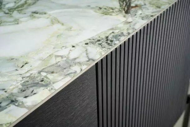 Ο συνδυασμός του ξύλου δρυός, της μεταλλικής βάσης και του κεραμικού δημιουργεί ένα έπιπλο με έντονη προσωπικότητα και υψηλή αισθητική, ιδανικό για να συμπληρώσει μοντέρνους ή βιομηχανικούς χώρους, προσφέροντας άφθονο αποθηκευτικό χώρο και ένα σημείο εστίασης στην διακόσμηση.