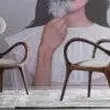 Η επένδυση της πολυθρόνας είναι σε έναν ανοιχτό, ουδέτερο μπεζ τόνο, ο οποίος προσφέρει μια αίσθηση ηρεμίας και κομψότητας. Το design της διακρίνεται από τις καθαρές γραμμές και την ενιαία, συμπαγή της μορφή. Τα μπράτσα και η πλάτη έχουν μια όμορφη καμπύλη, αγκαλιάζοντας το κάθισμα. Η εξωτερική πλευρά των μπράτσων και της πλάτης περιβάλλεται από μασίφ ξύλο καρυδιάς σε σκούρα απόχρωση, δημιουργώντας μια εντυπωσιακή αντίθεση με το ανοιχτόχρωμο δέρμα. Αυτή η ξύλινη λεπτομέρεια προσθέτει μια νότα ζεστασιάς και φυσικής ομορφιάς στο σύνολο. Επιπλέον, στην εξωτερική πλευρά των μπράτσων υπάρχουν διακριτικές οριζόντιες ραφές που προσθέτουν μια υφή και ένα επιπλέον στοιχείο design.