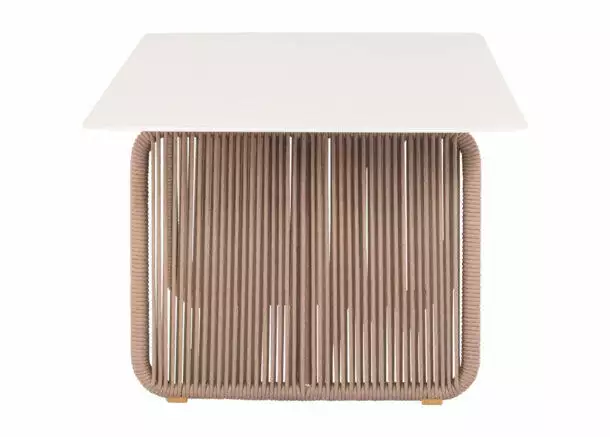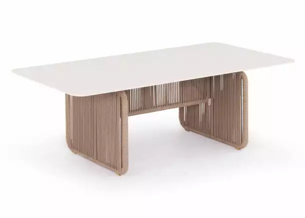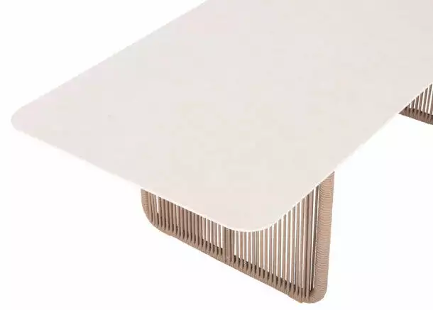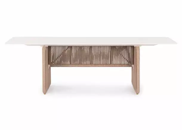 Σας παρουσιάζουμε ένα εξαιρετικό εξωτερικού χώρου τραπέζι τραπεζαρίας της σειράς ETHEREAL με σχοινί σε ΜΠΕΖ χρώμα και επιφάνεια από ΣΙΝΤΕΡΗ ΛΙΘΟ σε χρώμα ΙΒΟΥΑΡ. Μια σειρά που, μαζί με άλλες, ανεβάζει τον πήχη της ποιότητας και της αισθητικής που σας προσφέρουμε, τόσο για το σπίτι όσο και για οποιονδήποτε επαγγελματικό χώρο! Με απαράμιλλη ποιότητα κατασκευής και υλικών, θα αναβαθμίσει την εικόνα σε οποιονδήποτε χώρο επιθυμείτε.