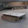Όταν οι επιφάνειες είναι ανασηκωμένες, αποκαλύπτεται ένας πρακτικός αποθηκευτικός χώρος στο εσωτερικό της βάσης. Αυτός ο χώρος είναι χωρισμένος σε θήκες, ιδανικές για την οργάνωση τηλεχειριστηρίων, περιοδικών, παιχνιδιών ή άλλων αντικειμένων που θέλετε να έχετε εύκολα προσβάσιμα αλλά και κρυμμένα όταν δεν χρησιμοποιούνται.