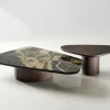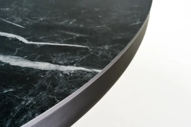 Το τραπεζάκι αυτό ενσωματώνει την ουσία της σύγχρονης κομψότητας με υλικά υψηλής ποιότητας και καθαρές γραμμές. Η επιφάνεια του τραπεζιού αποτελείται από κεραμικό top μαύρου χρώματος με διακριτικά λευκά νερά ενώ η στρογγυλή βάση από μαύρη ματ ξύλινη κατασκευή ενισχύει τη μοντέρνα αισθητική του, προσφέροντας οπτική ισορροπία και στιβαρότητα στο σύνολο.