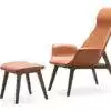 Εντυπωσιακή πολυθρόνα που συνδυάζει την ζεστασιά του ξύλου καρυδιάς με την απαλή αίσθηση του δέρματος σε μια ζωηρή πορτοκαλί απόχρωση.