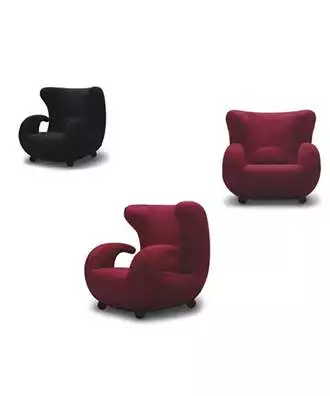 Ο σκελετός της πολυθρόνας είναι κατασκευασμένος από καμπυλωτό ξύλο καρυδιάς, δημιουργώντας ένα ρευστό και γλυπτικό περίγραμμα που αγκαλιάζει το κάθισμα και την πλάτη. Οι καμπύλες των μπράτσων και της βάσης προσδίδουν μια αίσθηση κίνησης και φυσικής ομορφιάς.